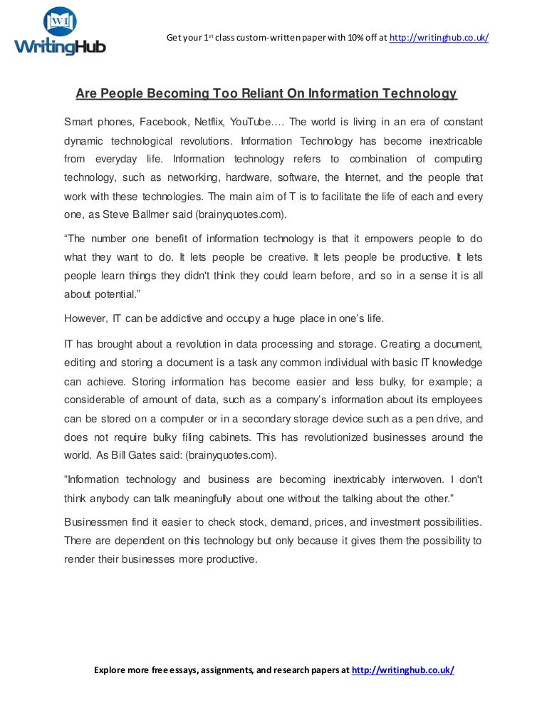 Are People Becoming Too Reliant On Information Technology - Yes yes, i have to agree that many people are becoming too dependent on technology.