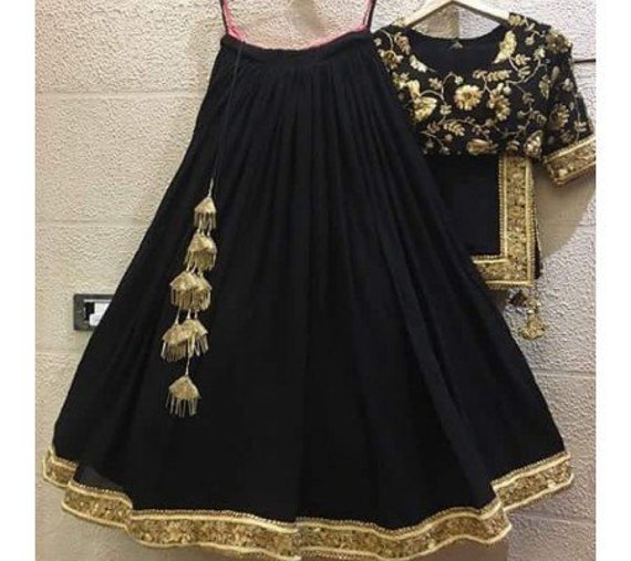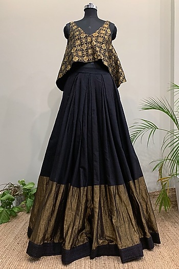 Black And Gold Lehenga Black And Gold Lehenga : Editor's note featuring an champagne gold leaf cape and blouse with nakshi, sequins and zari work and with lehanga skirt.