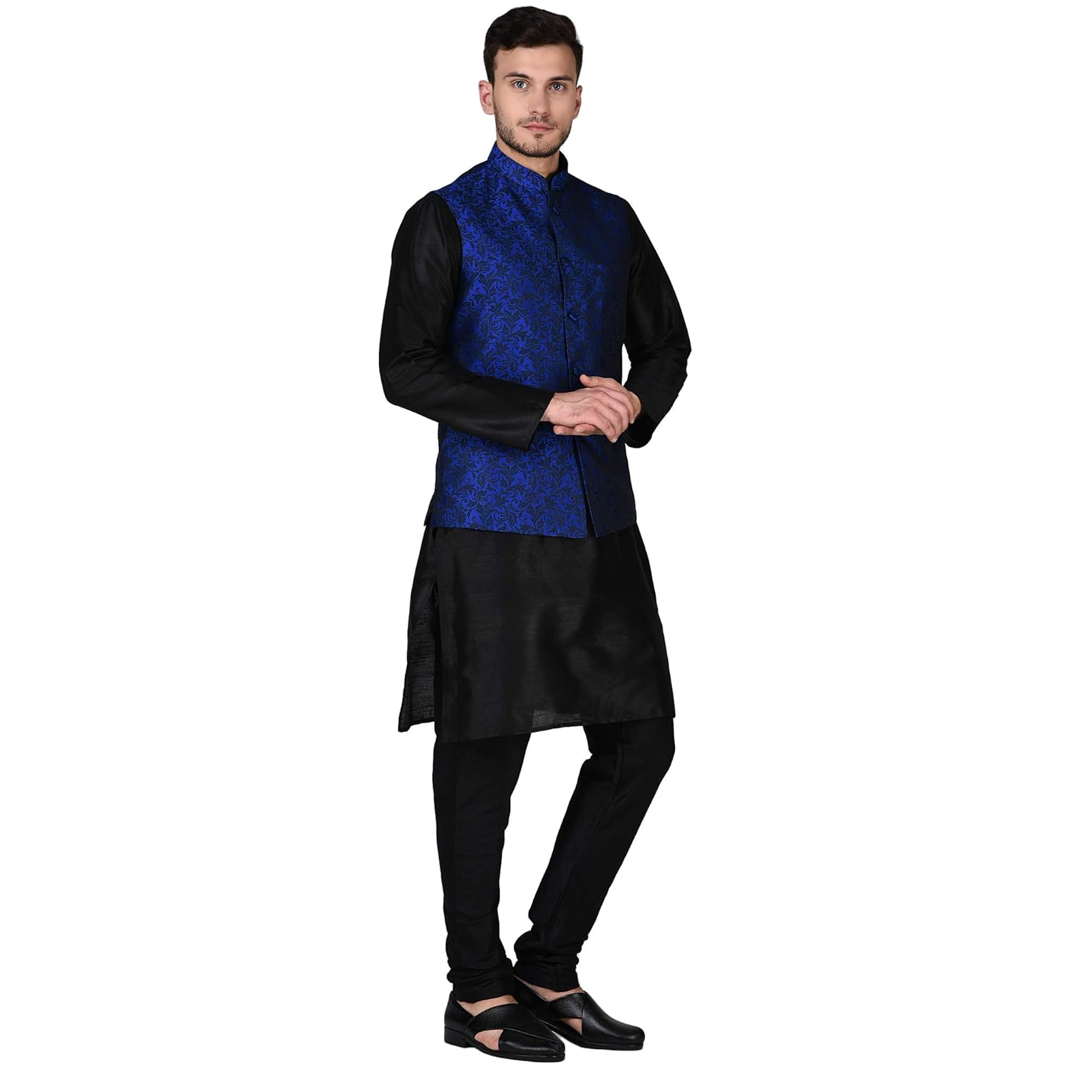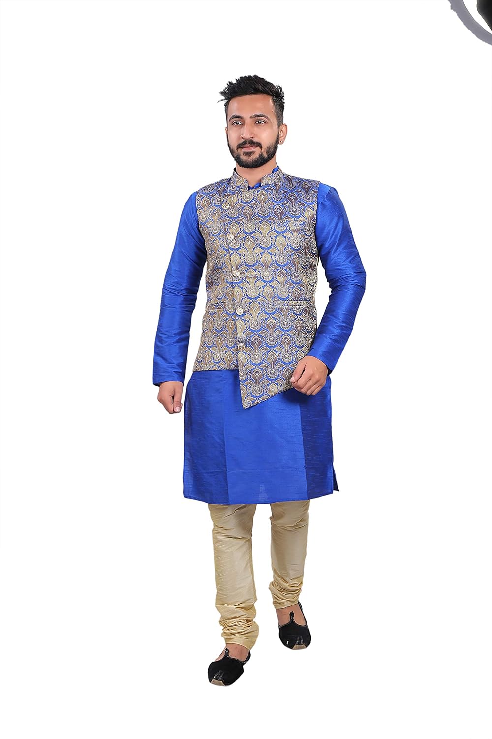 Blue Kurta Pajama With Jacket Blue Kurta Pajama With Jacket / Men's embroidered sherwani kurta pajama jacket & stole set thanksgiving outfit.