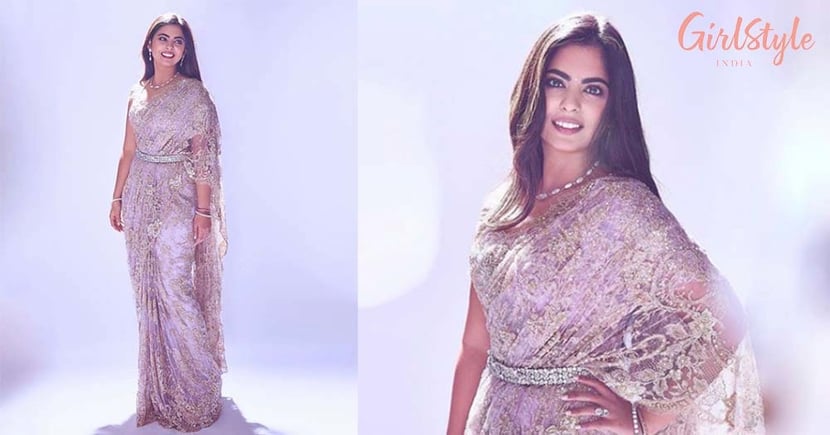 Isha Ambani Looks Gorgeous In A Lilac Embellished Lace Saree Girlstyle India - Unembellished is an antonym for embellished.
